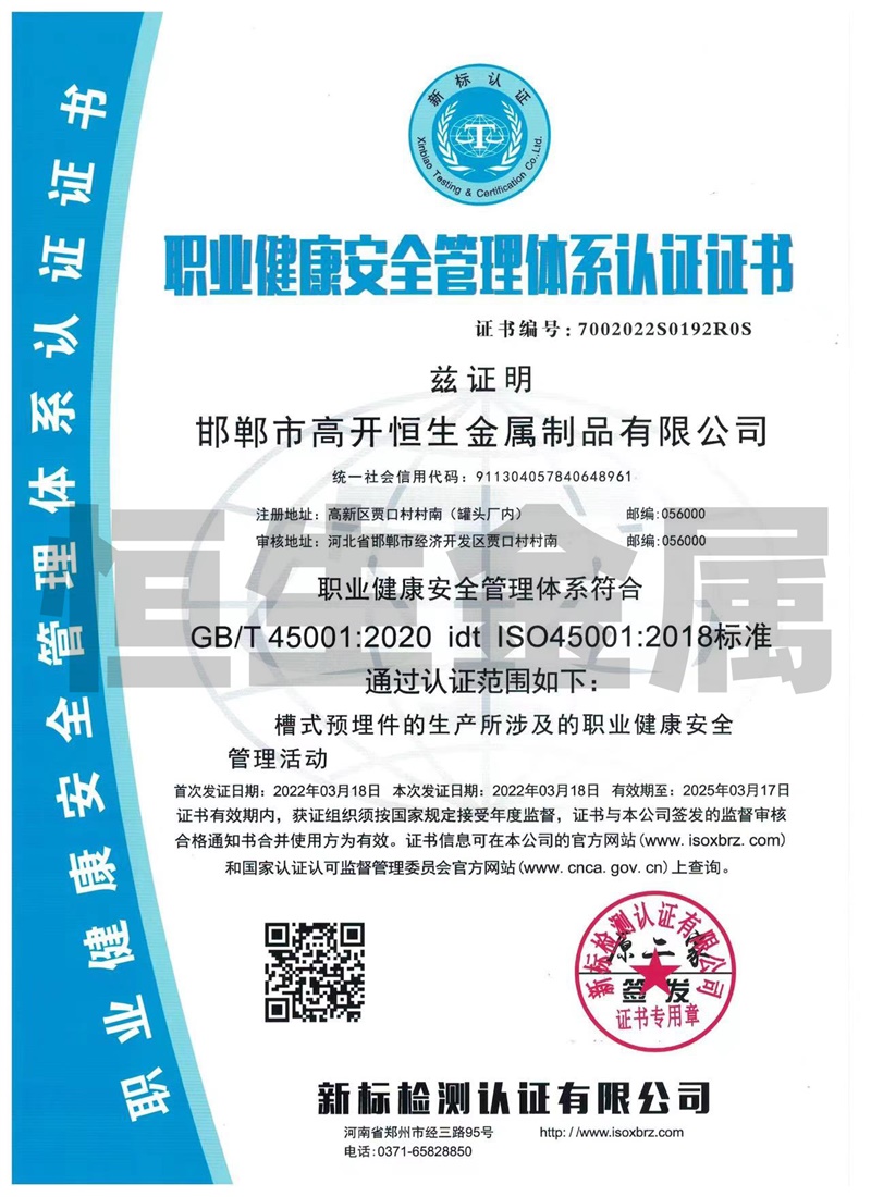 邯鄲市高開恒生金屬制品有限公司總部設(shè)在鋼城河北邯鄲,西鄰京廣線、東臨京深高速,地理位置優(yōu)越,交通比較便利。 我廠擁有多年生產(chǎn)預(yù)埋槽道的產(chǎn)品生產(chǎn)經(jīng)驗(yàn),專業(yè)生產(chǎn)鍍鋅防腐槽型預(yù)埋件系列產(chǎn)品,其中產(chǎn)品包括:高開恒生哈芬槽、哈芬槽鋼、預(yù)埋槽道、預(yù)埋滑槽、帶齒預(yù)埋槽鋼、槽式預(yù)埋件、工字鋼材料、C型槽材料配套的T型螺栓,也可根據(jù)客戶需求按圖訂做加工,產(chǎn)品廣泛應(yīng)用于隧道、城市軌道交通、地下綜合管廊、建筑幕墻施工工程。